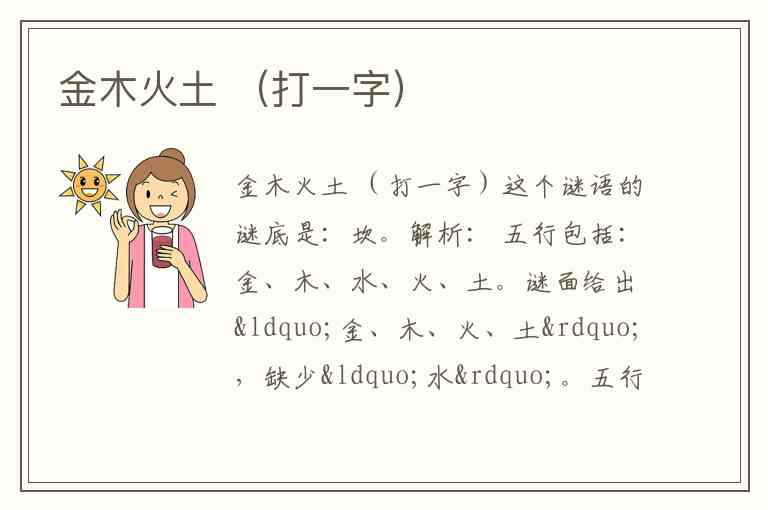 谜面给出“金、木、火、土”,缺少“水”。