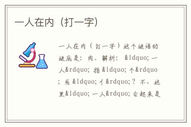 不过此谜标准答案是 “肉”,解释为: “内”字里面是“人”,而“肉”字是“内”字里面改为“仌”,但谜面说“一人在内”,可能用的是“肉”的异体或形似。