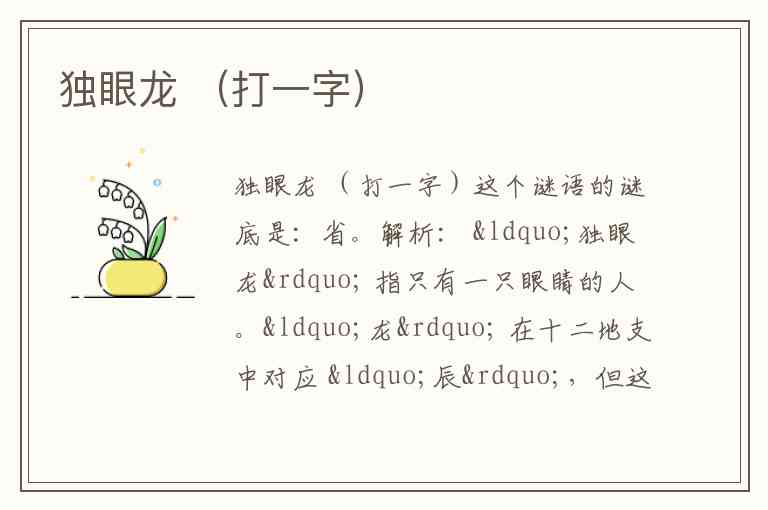 实际上,“龙”谐音 “眬”(目+龙),但“独眼龙”整体扣“少一目”。