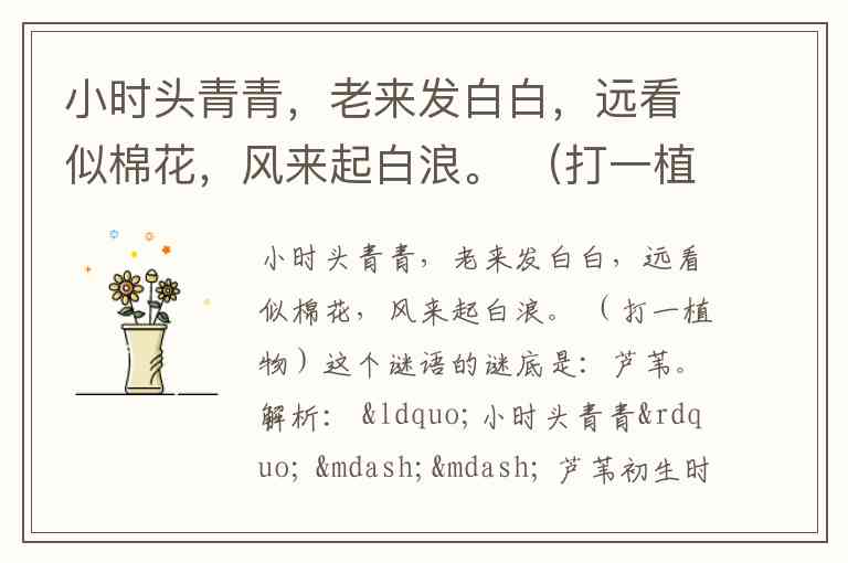 四句诗生动描绘了芦苇从幼到老的外观特征和随风摇曳的景象,贴合谜面。