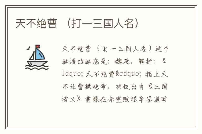 此谜通过典故双关,将“天不绝曹”会意为“魏国延续”,扣合人名魏延。
