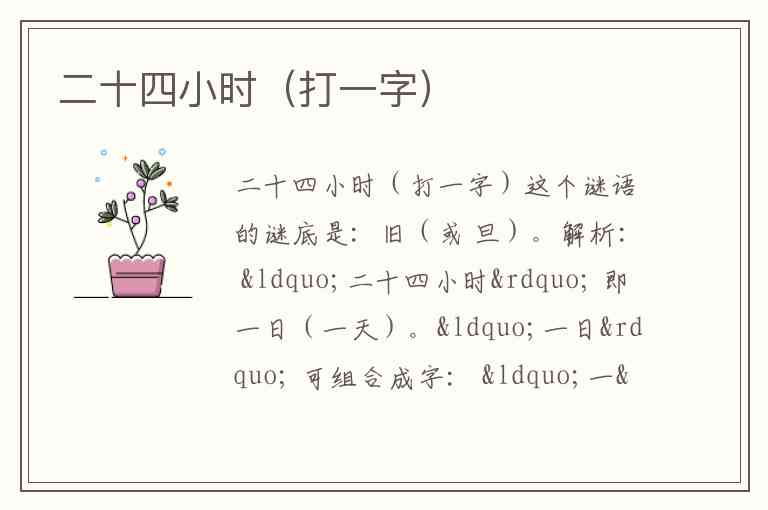 二十四小时(打一字)