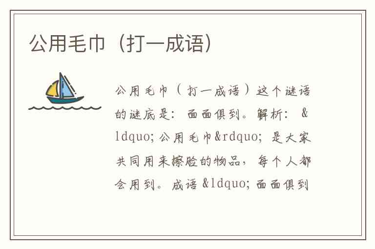 谜语巧妙地将毛巾的用途与成语含义结合,幽默贴切。