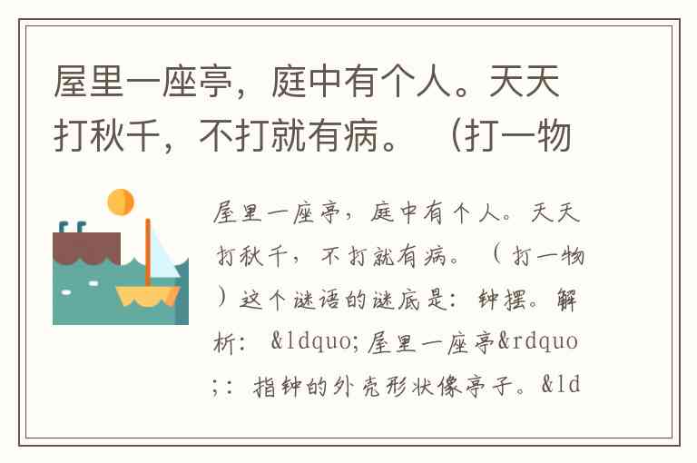 “亭中有个人”:钟摆形状像一个人在亭中。
