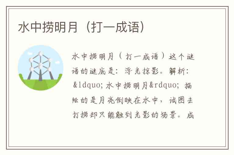 成语 “浮光掠影” 字面意为水面上的反光和一闪而过的影子,比喻观察不细致,印象不深刻,正好对应水中月影虚幻、无法捞起的意境。