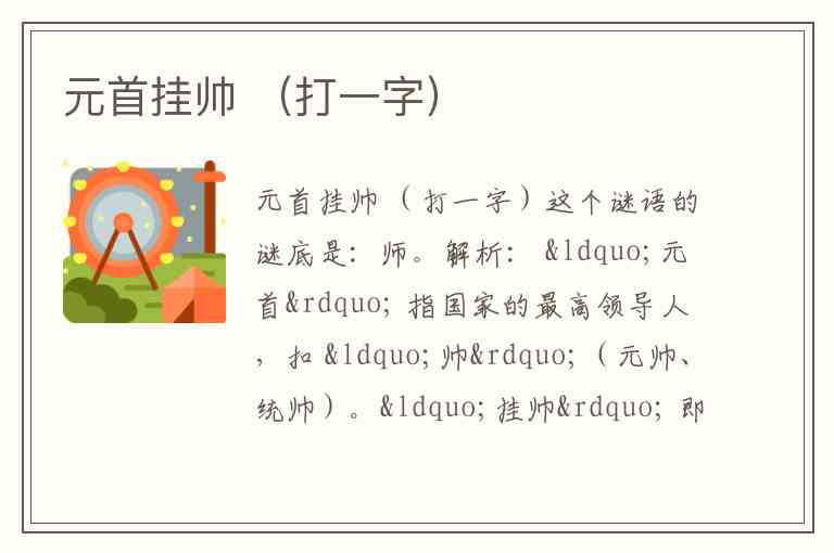 解析: “元首” 指国家的最高领导人,扣 “帅”(元帅、统帅)。