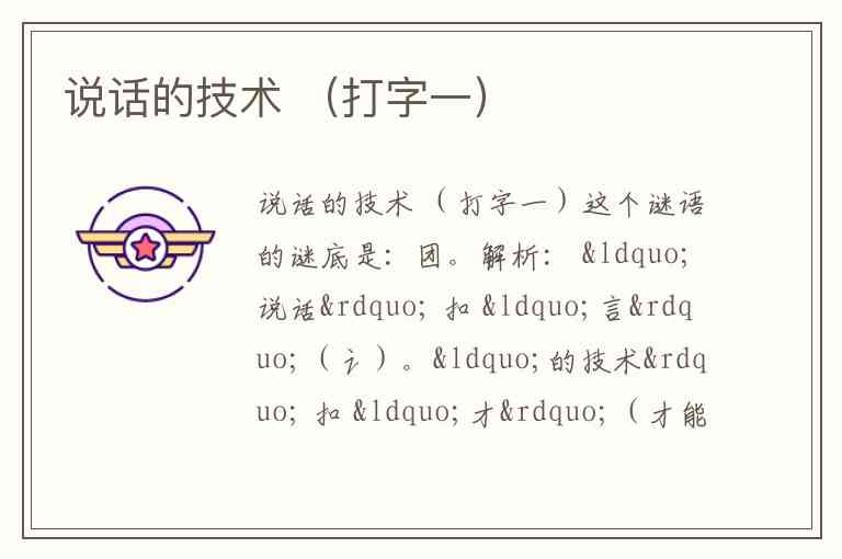 实际上,“说话的技术”即 “口才”: “口” + “才” = “团”(“团”字是“口”包围“才”)。
