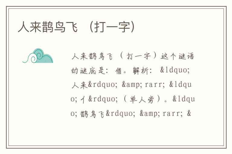 因此,“人来鹊鸟飞”通过拆解“鹊”字并加入“人”,合成“借”。