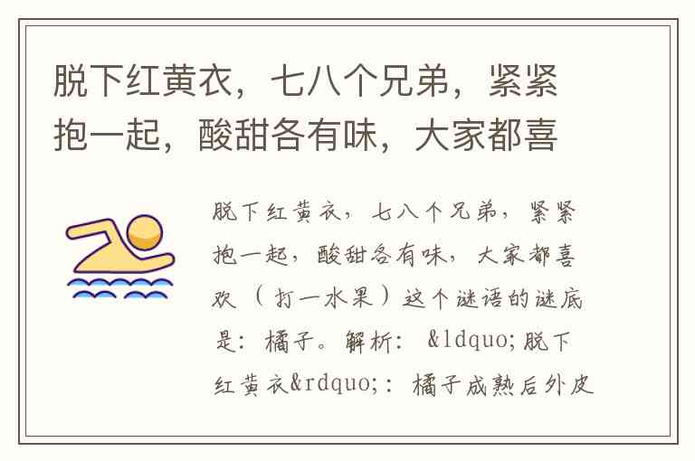 脱下红黄衣,七八个兄弟,紧紧抱一起,酸甜各有味,大家都喜欢 (打一水果)