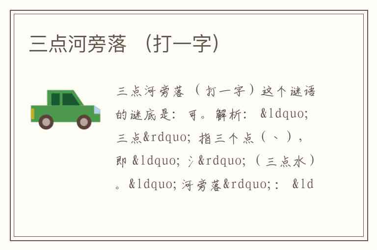 所以“三点河旁落” = “河”字去掉“氵”,剩下 “可”。