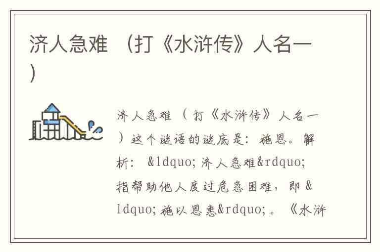 解析: “济人急难” 指帮助他人度过危急困难,即 “施以恩惠”。