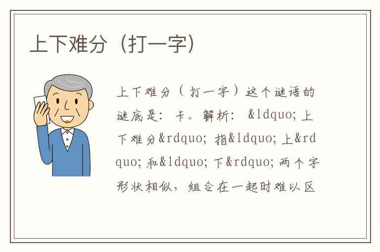 解析: “上下难分” 指“上”和“下”两个字形状相似,组合在一起时难以区分彼此。