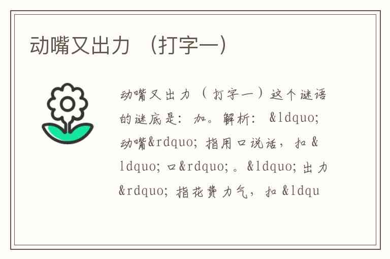 因此,“动嘴又出力”会意为“口力”,合成“加”。