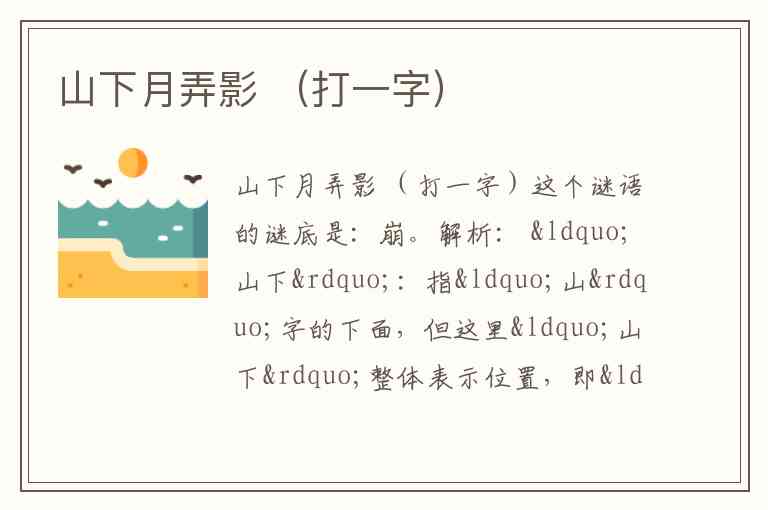 因此,“山下月弄影”=“山”+“月”+“月”(影)=“崩”。