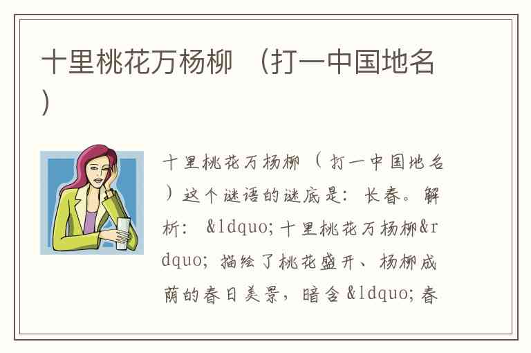 解析: “十里桃花万杨柳” 描绘了桃花盛开、杨柳成荫的春日美景,暗含 “春色长在” 之意。