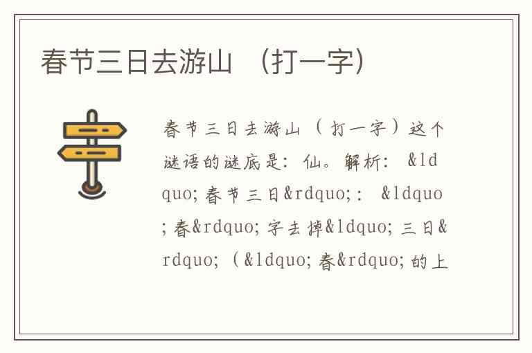 解析: “春节三日”: “春”字去掉“三日”(“春”的上半是“