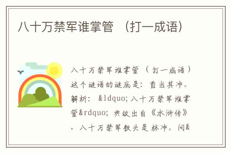 八十万禁军谁掌管 (打一成语)