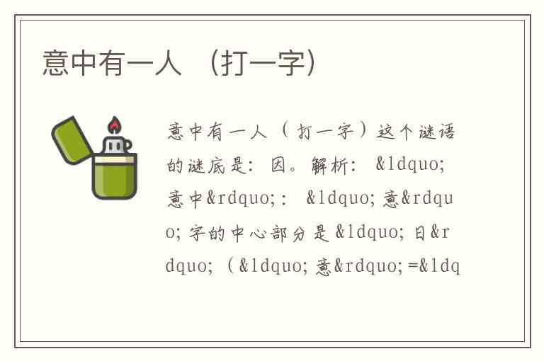 因此,“意中有一人”=“意”的中心“日”+“一人”(大)=“因”。