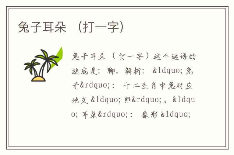解析: “兔子”: 十二生肖中兔对应地支 “卯”。