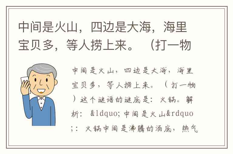 解析: “中间是火山”:火锅中间是沸腾的汤底,热气腾腾如火山。