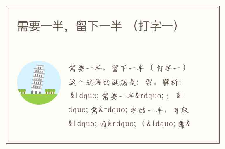 因此,“需要一半,留下一半”=“需”的一半“雨”+“留”的一半“田”=“雷”。