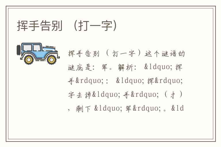 解析: “挥手”: “挥”字去掉“手”(扌),剩下 “军”。