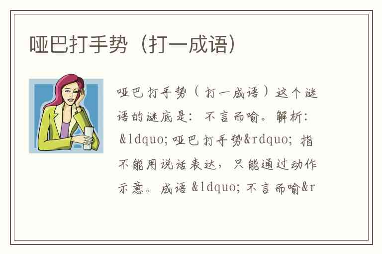 成语 “不言而喻” 本意是不用说话就能明白,与哑巴通过手势让人理解的情境完全契合。