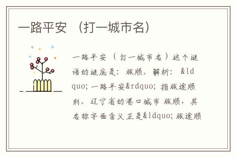 辽宁省的港口城市 旅顺,其名称字面含义正是“旅途顺利”。