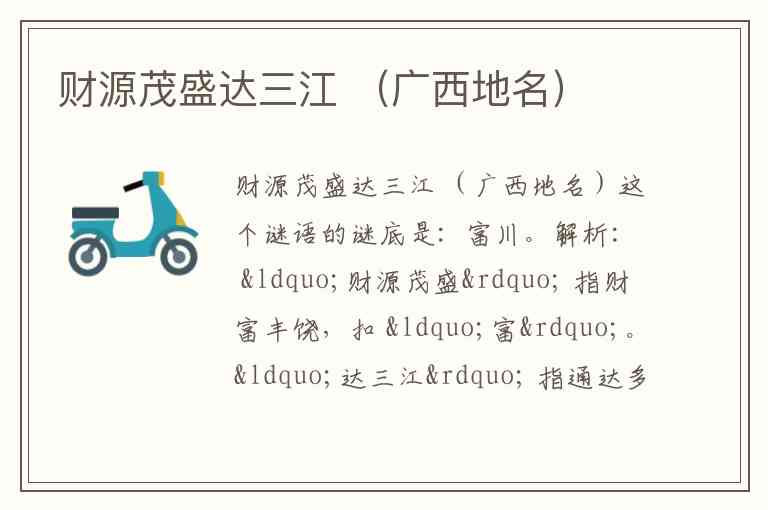 这个谜语的谜底是:富川。