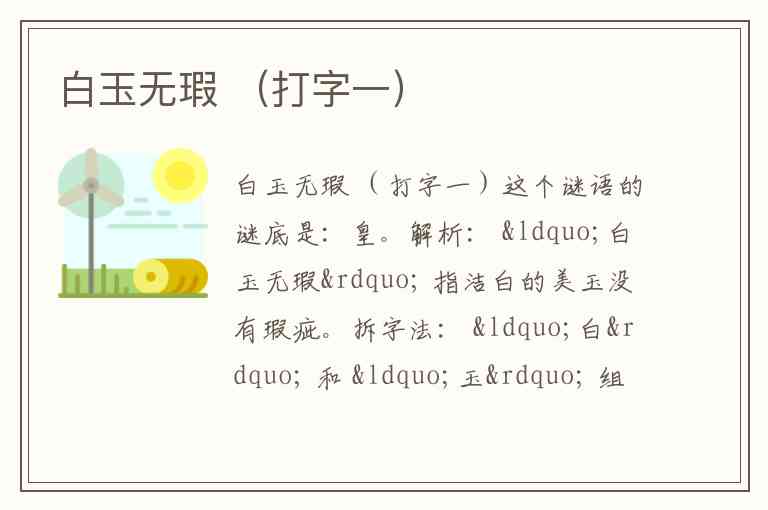 因此,“白玉无瑕”=“白”+“玉”无瑕(王)=“皇”。