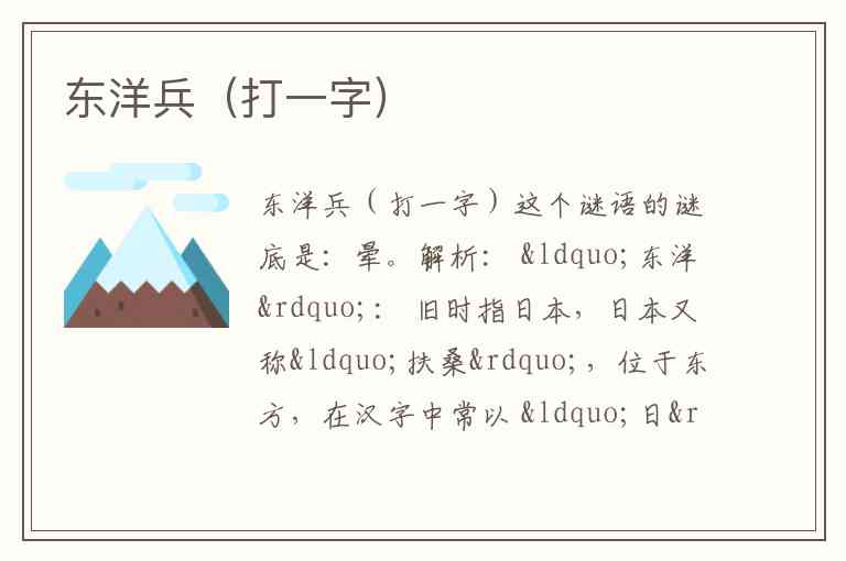解析: “东洋”: 旧时指日本,日本又称“扶桑”,位于东方,在汉字中常以 “日” 代表日本(太阳从东方升起,且日本国旗为太阳)。