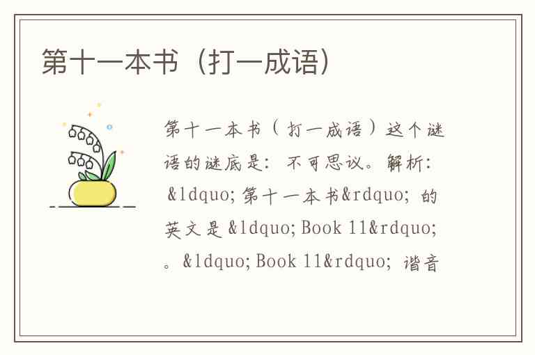 “Book 11” 谐音 “不可思议”(Book 十一 → “book shí yī” 快读似 “bù kě sī yì”)。