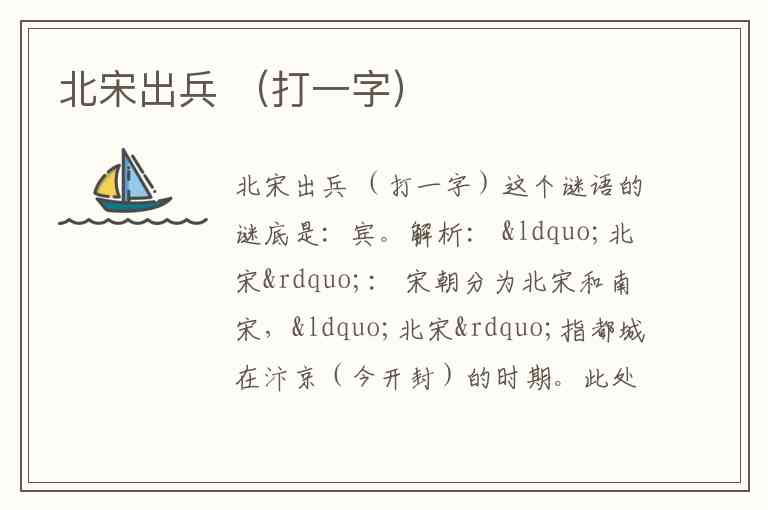 因此,“北宋出兵”=“宋”的上半“宀”+“兵”=“宾”。