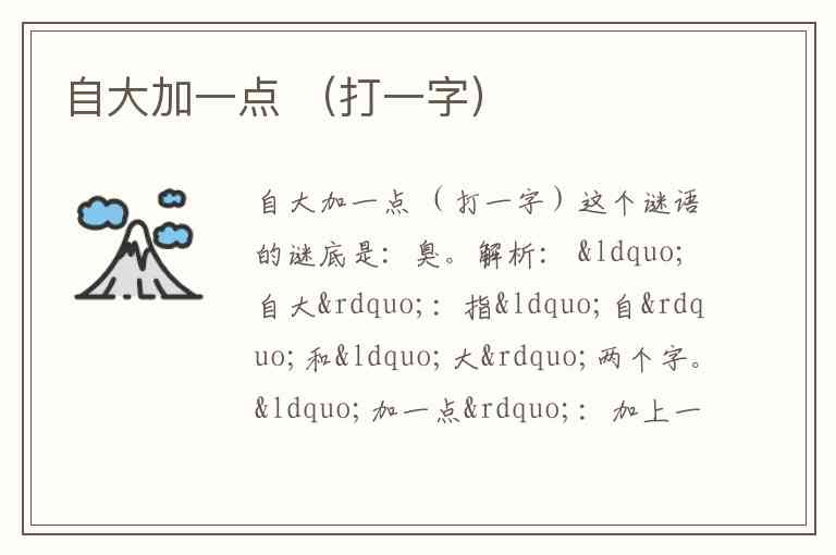 因此,“自大加一点”=“自”+“大”加一点(犬)=“臭”。