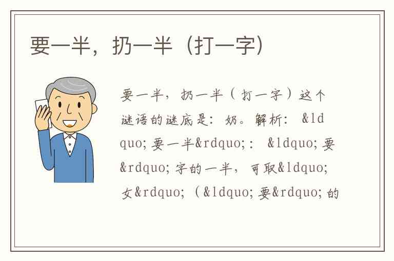 因此,“要一半,扔一半”=“要”的上半“女”+“扔”的右半“乃”=“奶”。