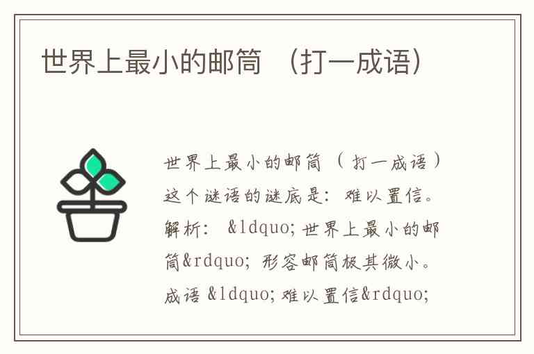 世界上最小的邮筒 (打一成语)