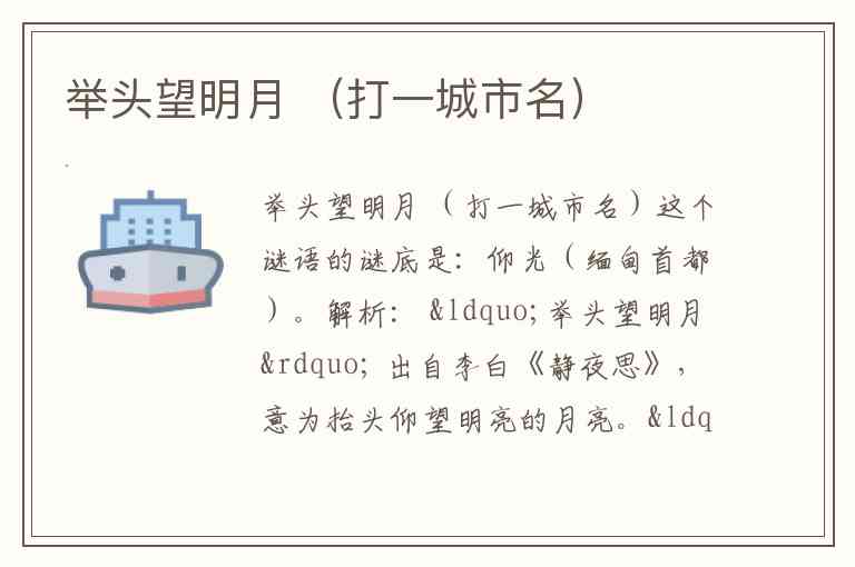 解析: “举头望明月” 出自李白《静夜思》,意为抬头仰望明亮的月亮。