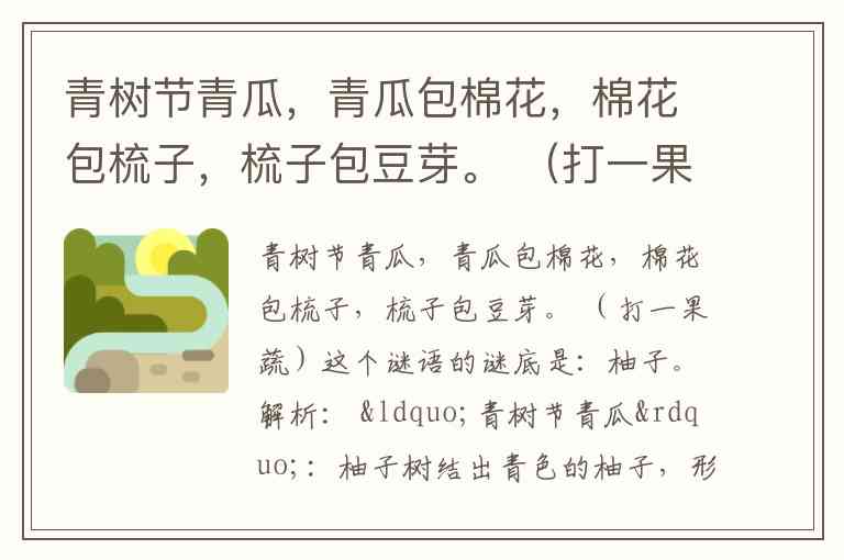 解析: “青树节青瓜”:柚子树结出青色的柚子,形似青瓜。
