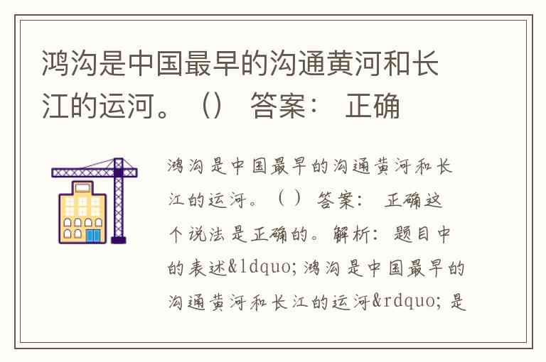 所以,题目说鸿沟是中国最早的沟通黄河和长江的运河,这一判断是正确的。