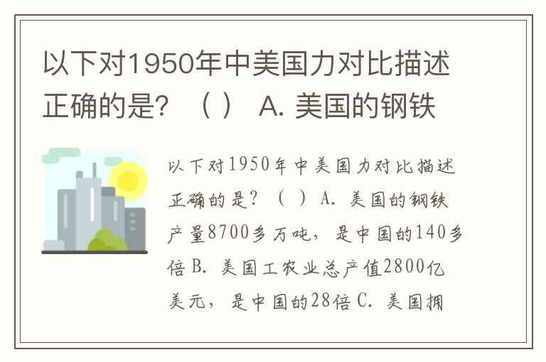 这个数据也基本符合历史事实。1950年美国的国民生产总值(GNP)远超中国,尽管具体倍数在不同统计口径下可能略有差异,但“数十倍”的差距是客观存在的,这体现了双方综合国力的巨大差距。