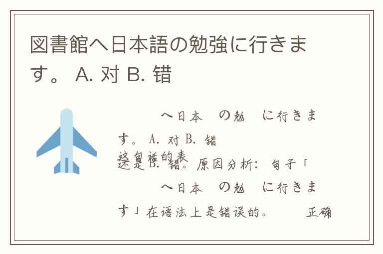 図書館へ日本語の勉強に行きます。 A. 对 B. 错