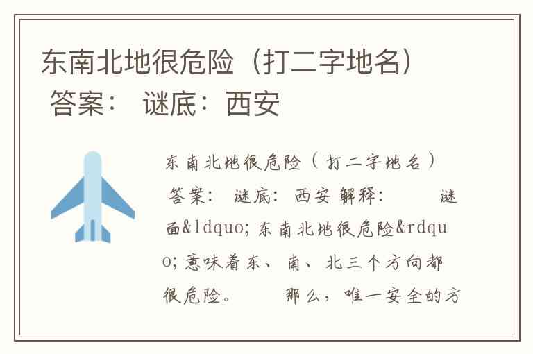 谜面“东南北地很危险”意味着东、南、北三个方向都很危险。