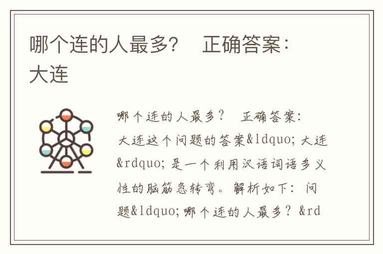 因此,通过这种双关和曲解,“大连”就成了“人最多的连”的幽默答案。