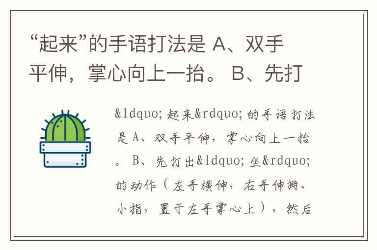 正确答案是 B、先打出“坐”的动作(左手横伸,右手伸拇、小指,置于左手掌心上),然后直立,表示站起来。