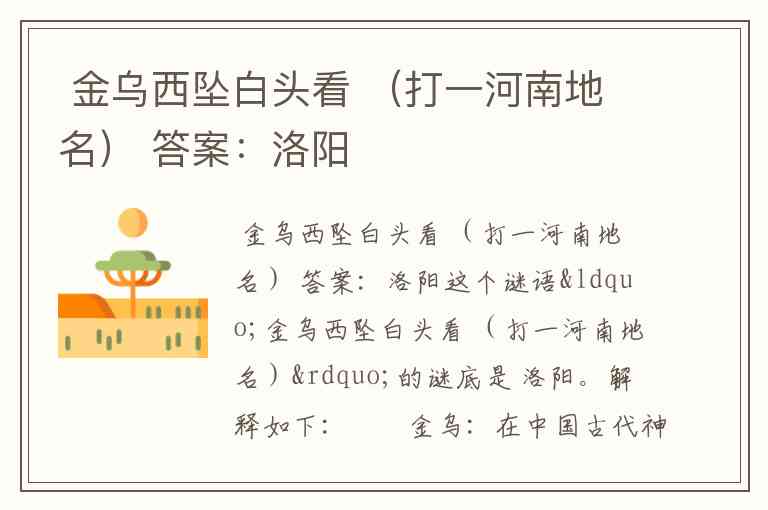 这个谜语“金乌西坠白头看 (打一河南地名)”的谜底是 洛阳。