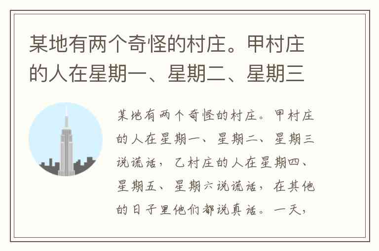 甲村:一、二、三说谎,其他日子(四、五、六、日)说真话。