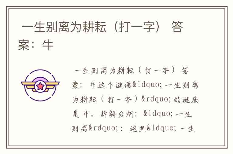 这个谜语“一生别离为耕耘(打一字)”的谜底是 牛。