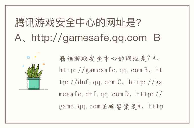 腾讯游戏安全中心的网址是? A、http://gamesafe.qq.com B、http://dnf.qq.com C、http://gamesafe.dnf.qq.com D、http://game.qq.com