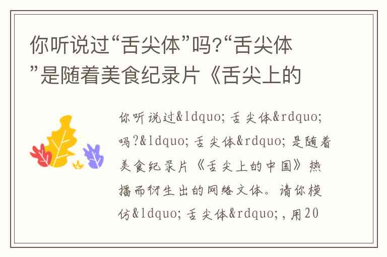 如果需要我用“舌尖体”介绍一道美食,随时可以告诉我哦!