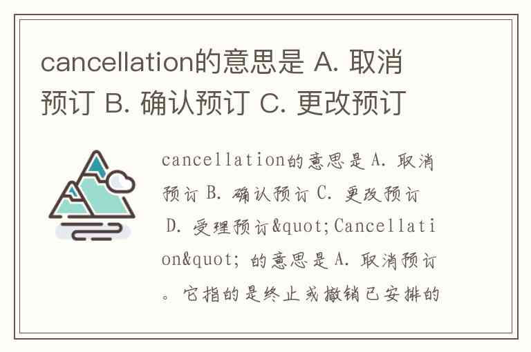 cancellation的意思是 A. 取消预订 B. 确认预订 C. 更改预订 D. 受理预订